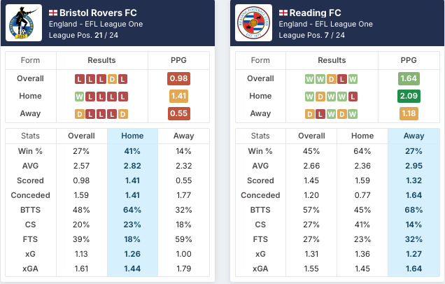 Recent history heavily favours Reading. The last three meetings between the sides have resulted in two wins for the Royals and one draw, with Bristol Rovers failing to secure a victory. Reading won the reverse fixture earlier this season and also triumphed 2-0 at the Memorial Stadium in the corresponding fixture last season, a crucial result in their (ultimately unsuccessful) fight against Championship relegation, with goals from Sam Smith and Lewis Wing.
